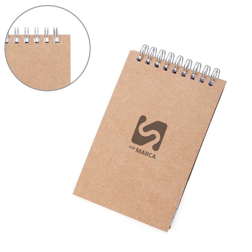 Descrição: Bloco de anotações ecológico com wire-o. Contém aproximadamente 80 páginas pautadas na cor branca.