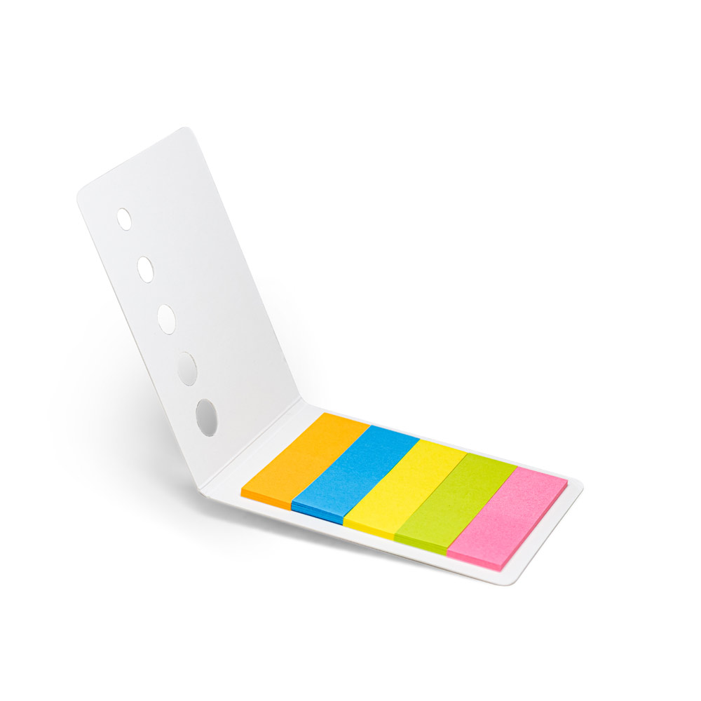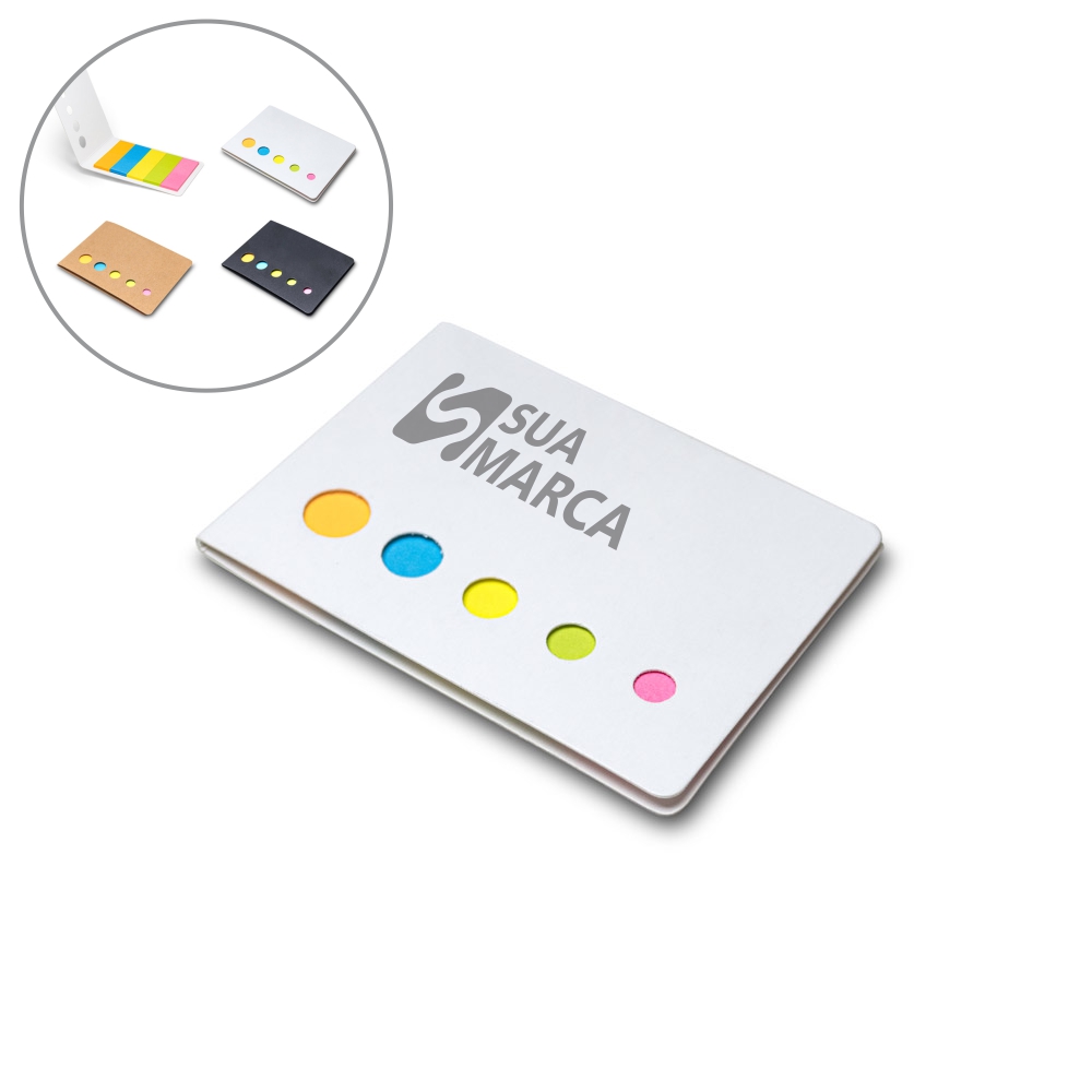 5 blocos adesivados com 20 folhas cada e capa em cartão. Este produto é feito de material proveniente de gestão florestal sustentável.