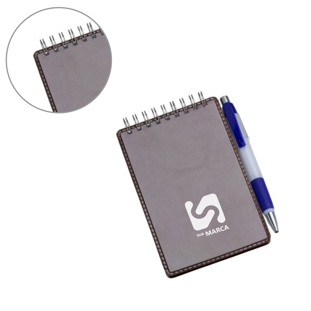 Caderneta de Anotações Vertical em Couro Ecológico Marrom - Formato: 90mm X 140mm com 100 Folhas Brancas e Suporte para Caneta.(não acompanha caneta)