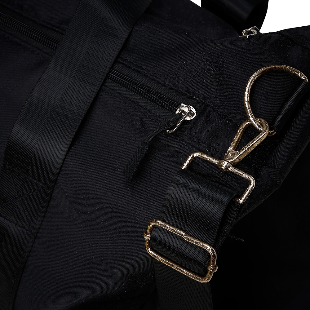 Bolsa esportiva 35L de poliéster resistente a água. Contém cinco compartimentos sendo dois deles: um especial para colocar sapatos e um bolso impermeável para roupas molhadas. Possui também encaixe para malas de viagem, duas alças de mão, uma alça de mão lateral e alça de ombro com regulagem.