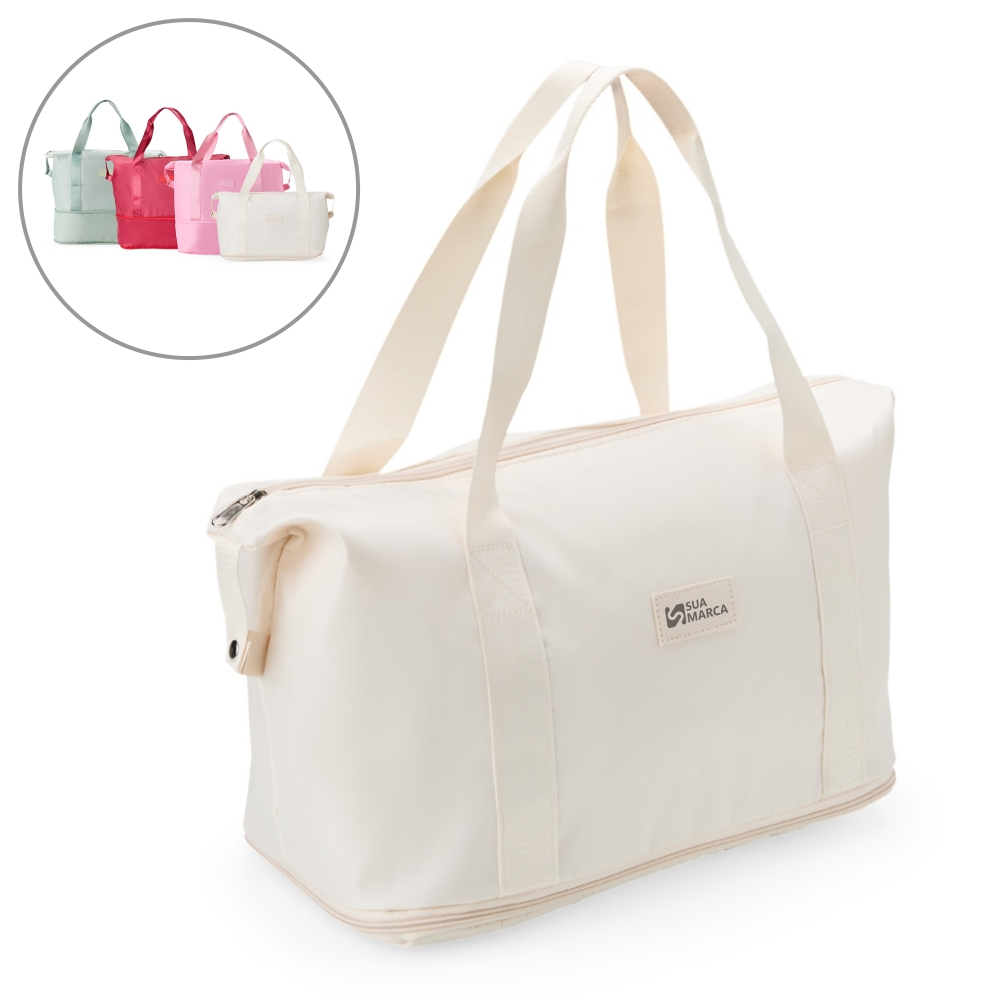 Descrição: Muito mais espaço e praticidade em uma só bolsa esportiva para carregar equipamentos, calçados e roupas até academias, quadras, estúdios ou viagens em geral. Feita em poliéster resistente à água, ela possui um compartimento expansível que, quando aberto em zíper, aumenta a capacidade máxima da bolsa para até 26 litros. Além do amplo espaço interno com direito a bolso para organização de objetos menores, também apresenta bolso externo com área para o encaixe de alças de malas de viagem e, com isso, é possível criar combinações práticas em deslocamentos.