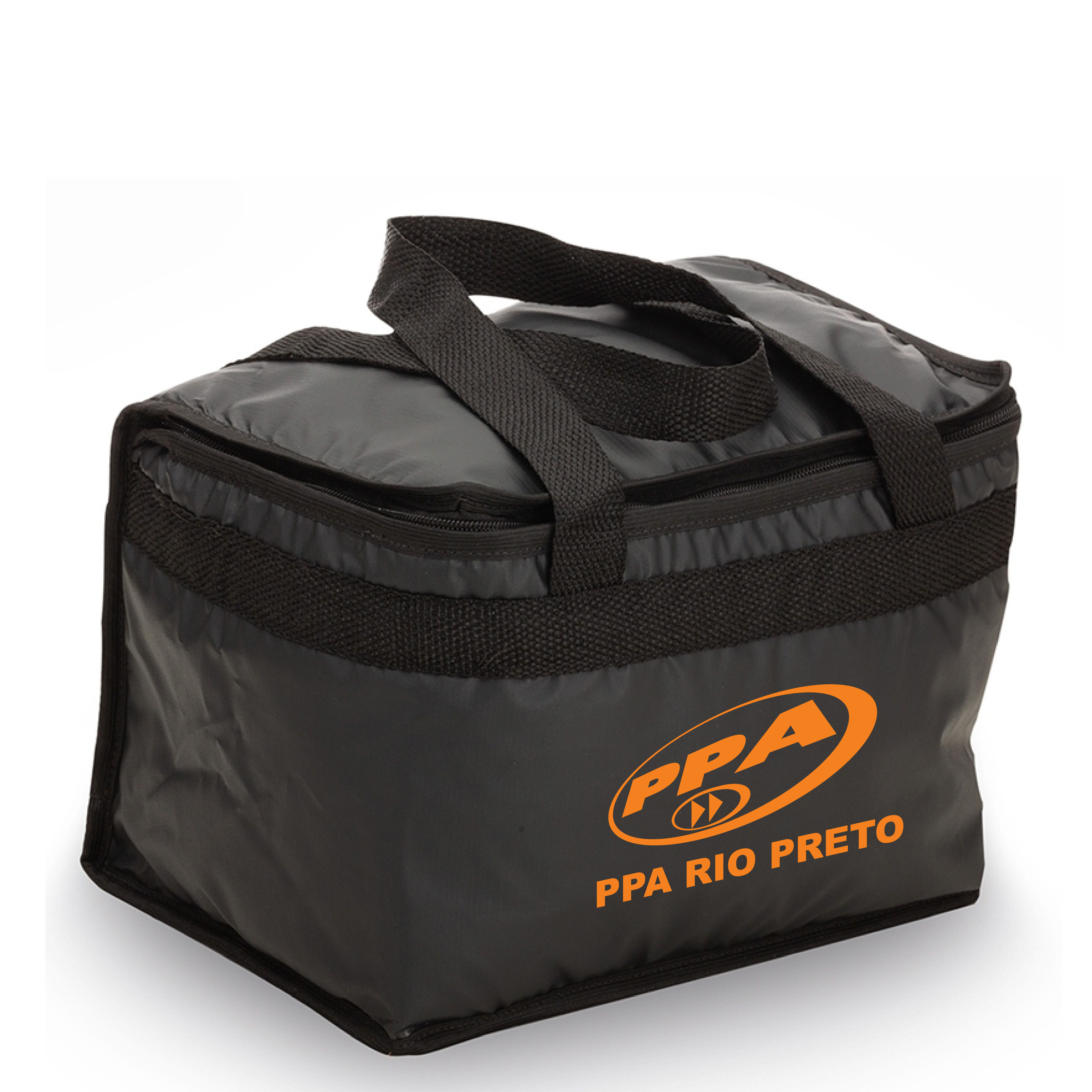 Descrição: Bolsa térmica 13 litros confeccionada em bagum sintético, contém revestimento interno em polietileno atóxico soldado (não vaza) e alça para mãos em polipropileno.