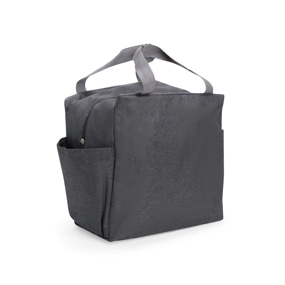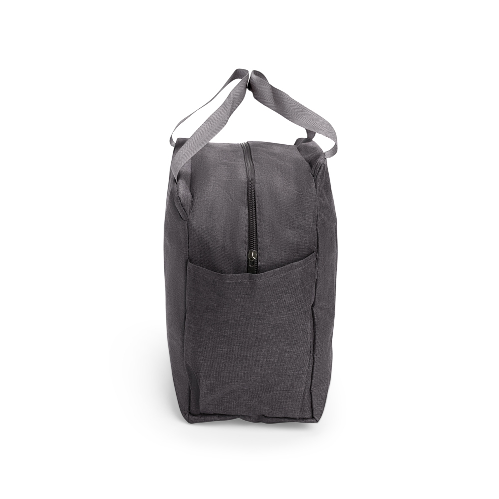Bolsa térmica confeccionada em Oxford resistente à água, fechamento em zíper e capacidade de até 9 litros. Possui revestimento térmico em folha de alumínio, além de dois bolsos laterais e um par de alças em nylon para transporte.