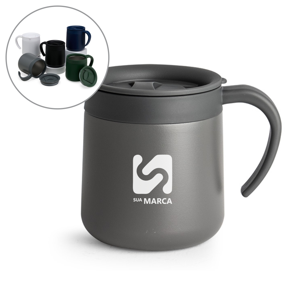 Descrição: A companheira perfeita para manter bebidas na temperatura ideal por mais tempo. Feita em inox, com parede dupla e capacidade de até 350ml, esta caneca resistente e durável, tem tampa ajustável que evita derramamentos, trazendo ainda mais praticidade para o dia a dia.