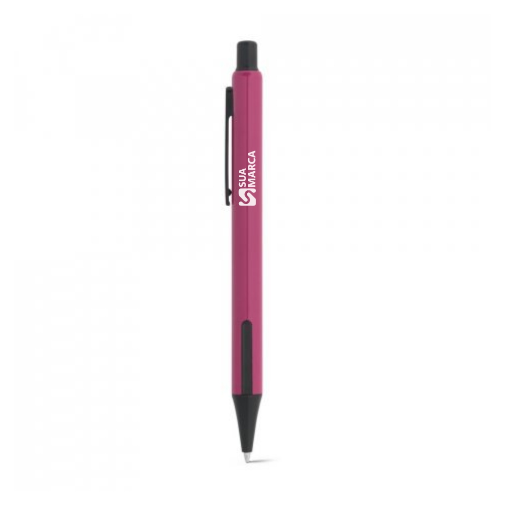 Esferográfica em alumínio. Até 1,5 km de escrita. Escrita azul.