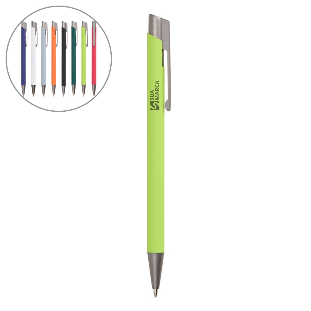 Caneta esferográfica de carga azul de 1.0mm, acionamento por clique e construção leve totalmente em metal, o que possibilita uma pegada suave para uma escrita mais precisa.