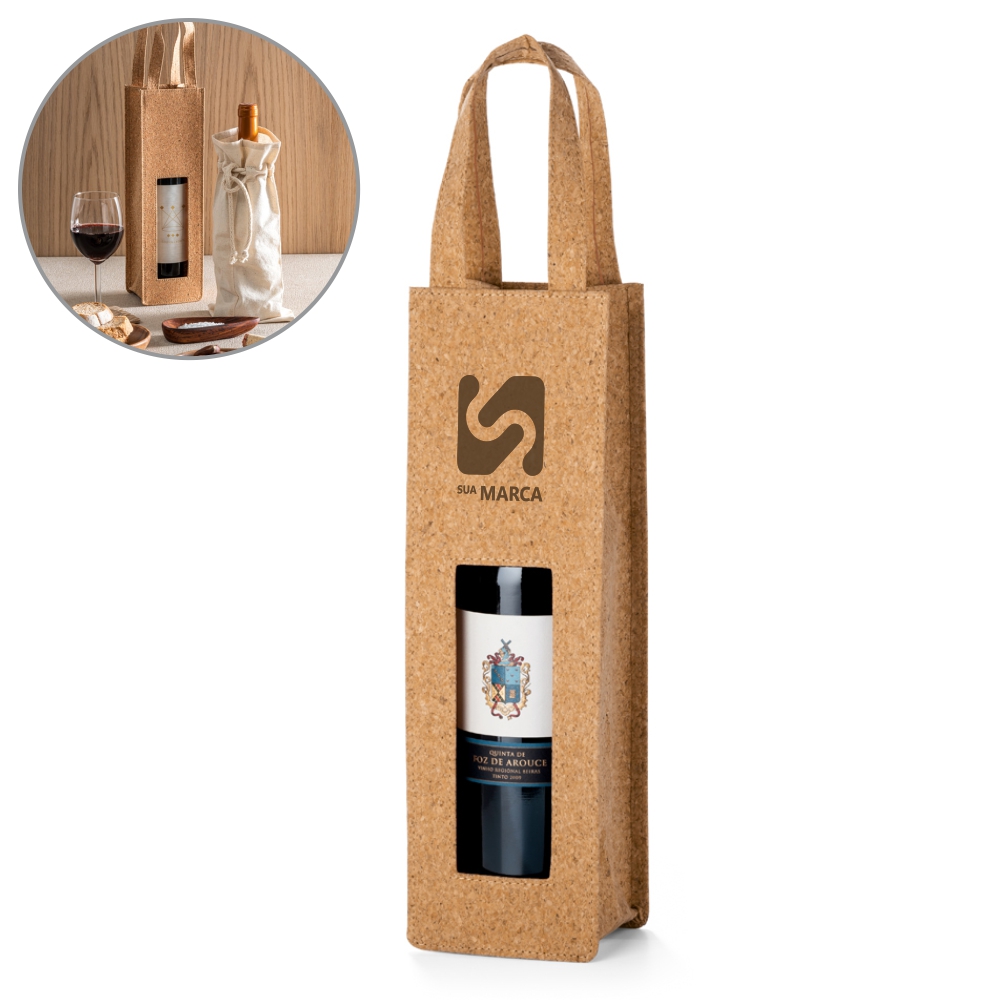 Sacola para 1 garrafa. Cortiça. 100 x 330 x 100 mm.