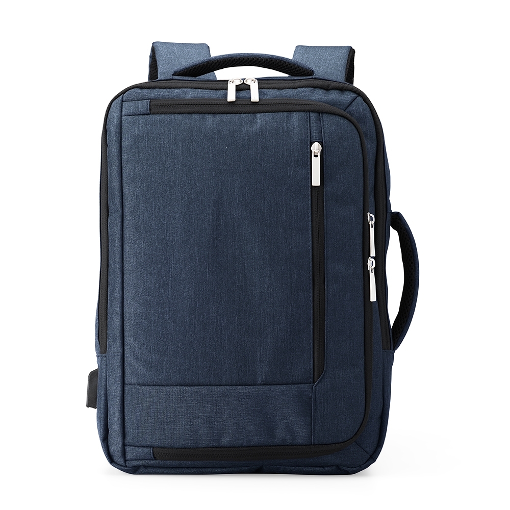 Mochila de poliéster impermeável 19 litros com 4 compartimentos, sendo o principal com bolso para notebook 15,6 e compartimento com bolso sanfonado, ideal para documentos. Com divisórias internas para acessórios, a mochila possui suporte externo USB, alça para engate em malas de viagem e duas alças de mãos, sendo uma delas para o transporte da mochila no formato pasta.