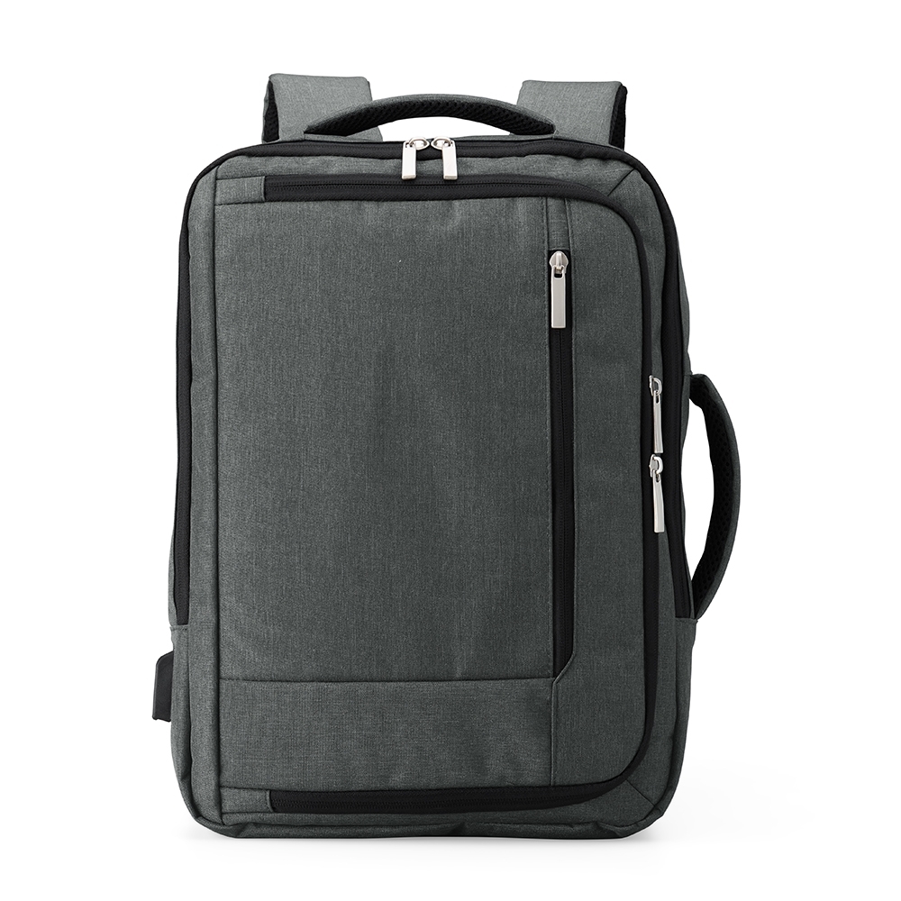 Descrição: Mochila de poliéster impermeável 19 litros com 4 compartimentos, sendo o principal com bolso para notebook 15,6 e compartimento com bolso sanfonado, ideal para documentos. Com divisórias internas para acessórios, a mochila possui suporte externo USB, alça para engate em malas de viagem e duas alças de mãos, sendo uma delas para o transporte da mochila no formato pasta.