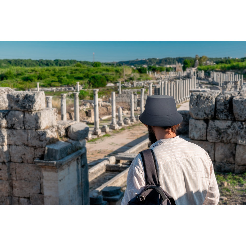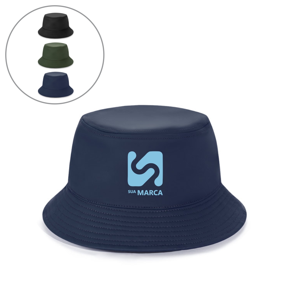 Panamá em poliéster 100% reciclado, repelente à água. Confortável, leve e prático para o dia a dia, faça chuva ou sol.