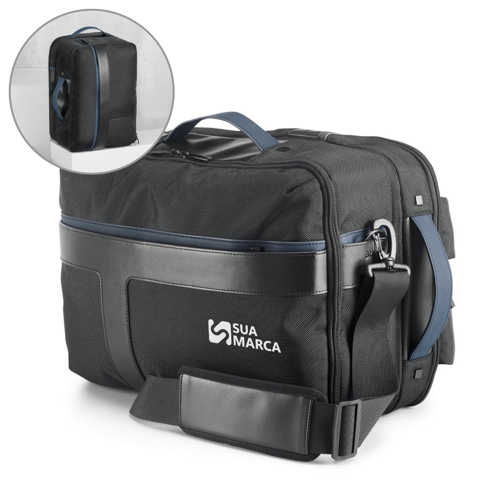 A DYNAMIC Backpack é uma mochila urbana que se distingue pela sua versatilidade e dualidade. O seu design eficiente permite-lhe que seja um objeto único e versátil que se multiplica discretamente numa mochila e numa sacola de viagem. A mochila em c.sintético 1680D tem dois bolsos no interior, que permitem proteger seu notebook até 15.6'' e seu tablet até 10.5''. A espaçosa sacola de viagem permite organizar na perfeição sua roupa para uma viagem de 2 ou 3 dias. Possui bolso antirroubo na parte posterior e fechos com banda elástica com placa em PU. A DYNAMIC Backpack tem ainda um encaixe para trolley que sublinha o seu lado prático e funcional. As duas partes desta mochila, podem ser usadas separadamente ou como uma peça única. Fornecida em sacola de non-woven. 300 x 420 x 200 mm | Mochila: 300 x 420 x 75 mm | Sacola de viagem: 300 x 420 x 130 mm | Sacola em Non-woven: 550 x 580 x 210 mm.