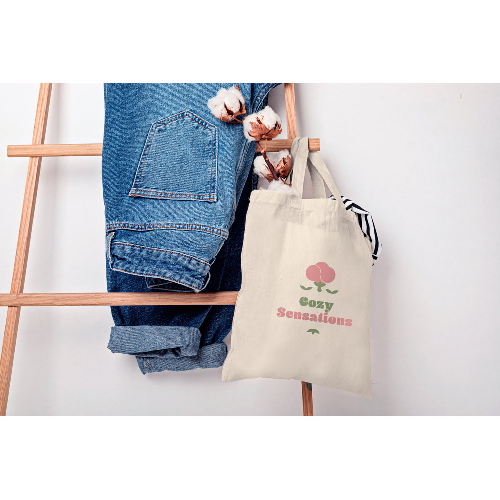 Sacola em 100% algodão orgânico (140 g/m²), com alças de 65 cm.