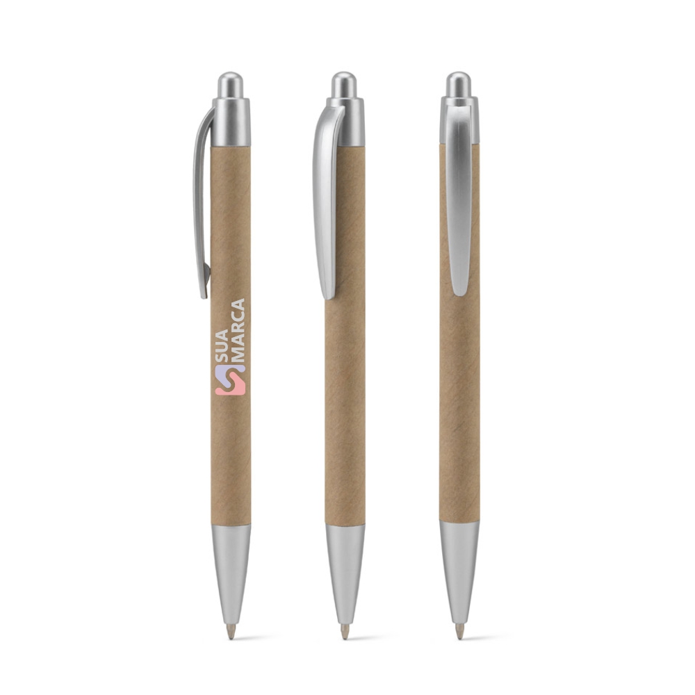 Uma esferográfica com materiais reciclados para dar destaque à sua marca. A cor e o resultado da impressão nos materiais naturais pode variar entre produtos.