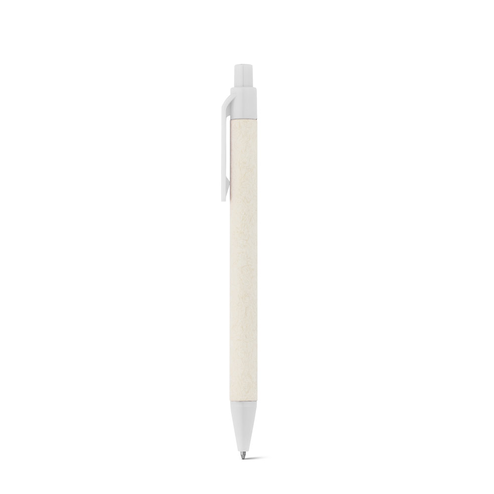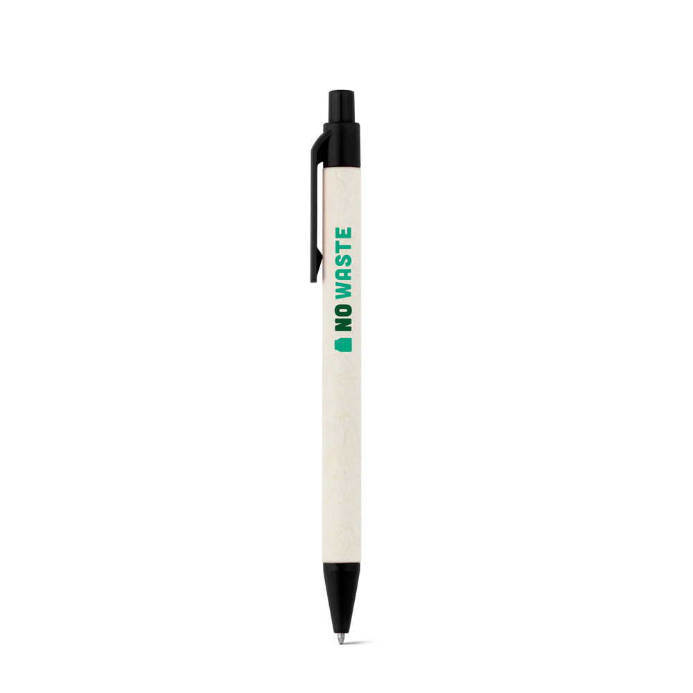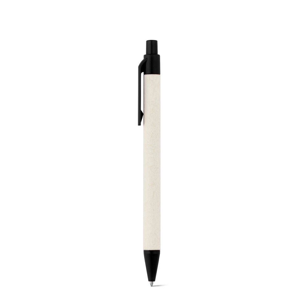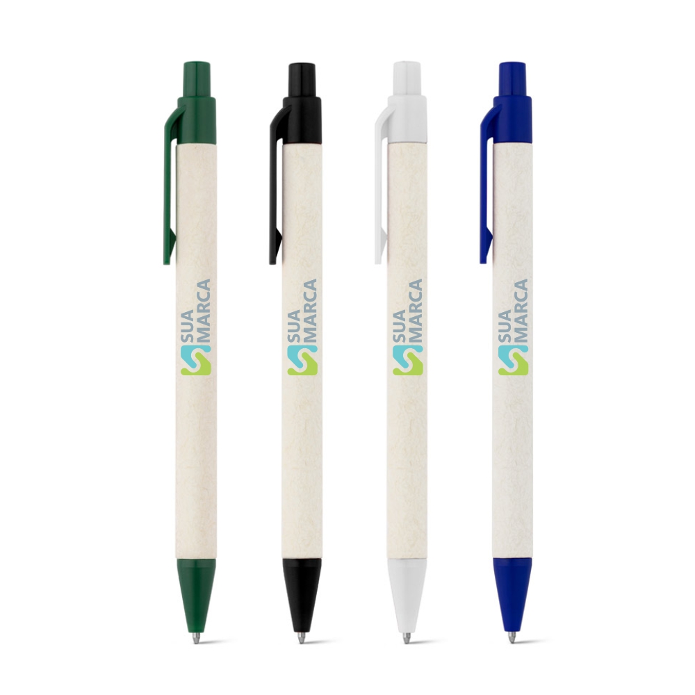 Esferográfica produzida através de pacotes de leite reciclados, contribuindo para o reaproveitamento do cartão e alumínio. Corpo em cartão e componentes coloridos em ABS 100% reciclado.