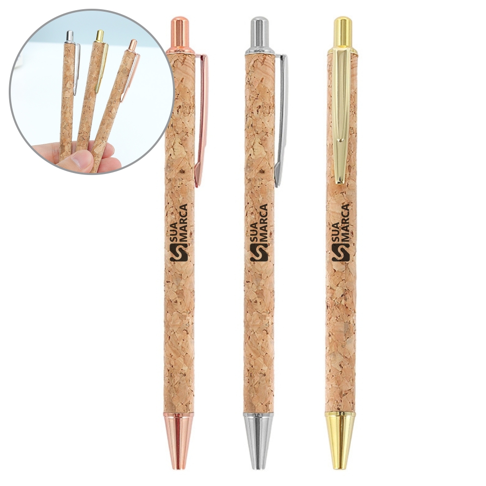Destaque-se com nossa Caneta Ecológica de Cortiça, feita de um material naturalmente sustentável. A cortiça oferece uma textura única que não só chama atenção, mas também conforto no uso diário. É uma opção ideal para marcas que desejam associar-se com inovação e responsabilidade ecológica.