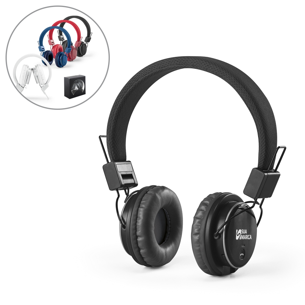 Fone de ouvido dobrável. ABS. Ajustável. Com estrutura almofadada, transmissão por bluetooth e leitor de cartões TF. Autonomia até 4 h. Função para atender chamadas, controle de volume, conexão à playlist do dispositivo móvel e rádio FM. Incluso cabo micro USB para carregar. Fornecido em caixa presente. Dobrados: 115 x 135 x 68 mm | Caixa: 150 x 150 x 70 mm.