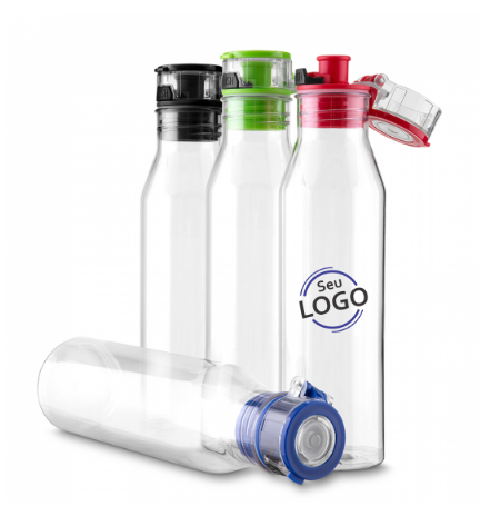 Garrafa plástica 700 ml com tampa e alça de mão em cores, plástico utilizado tritan.