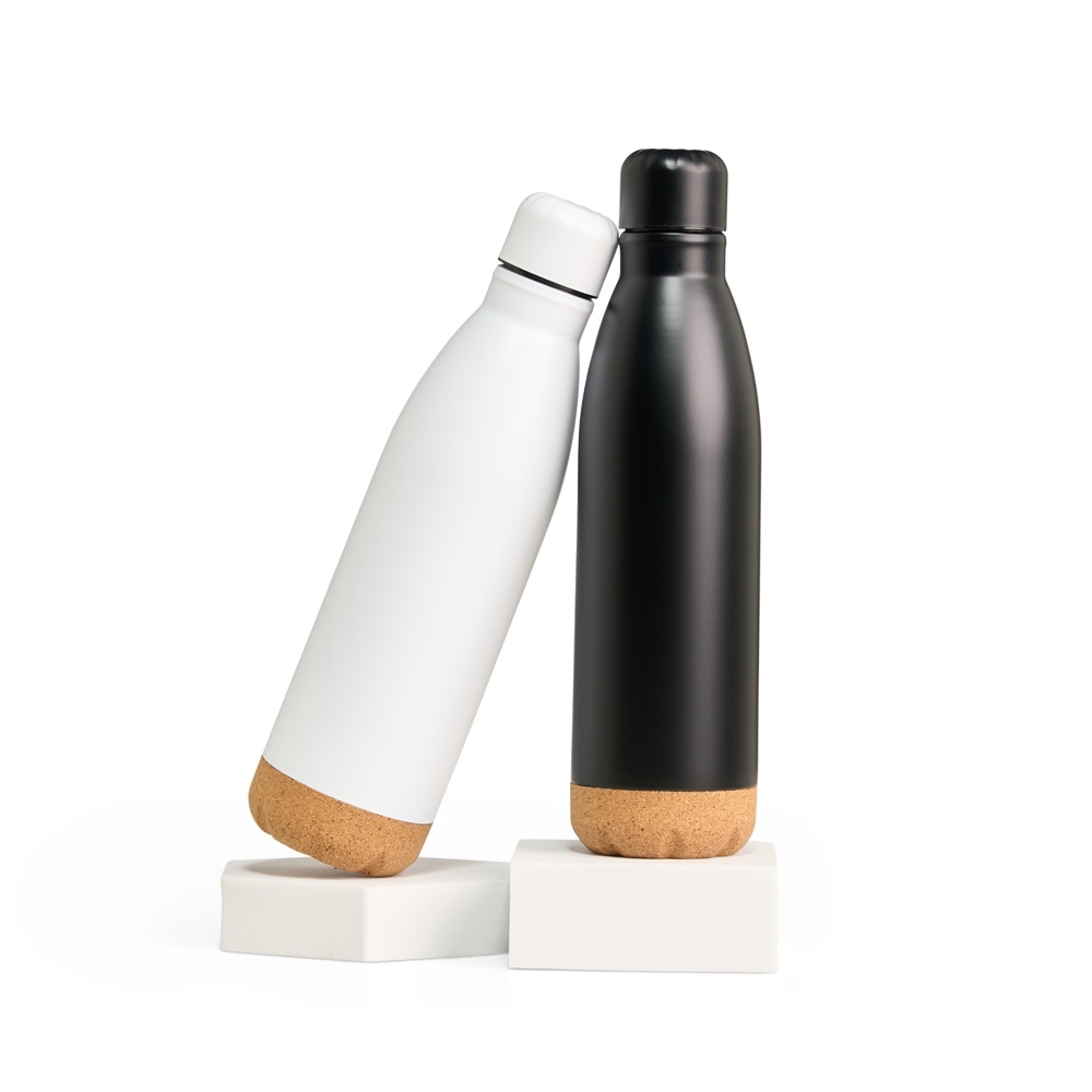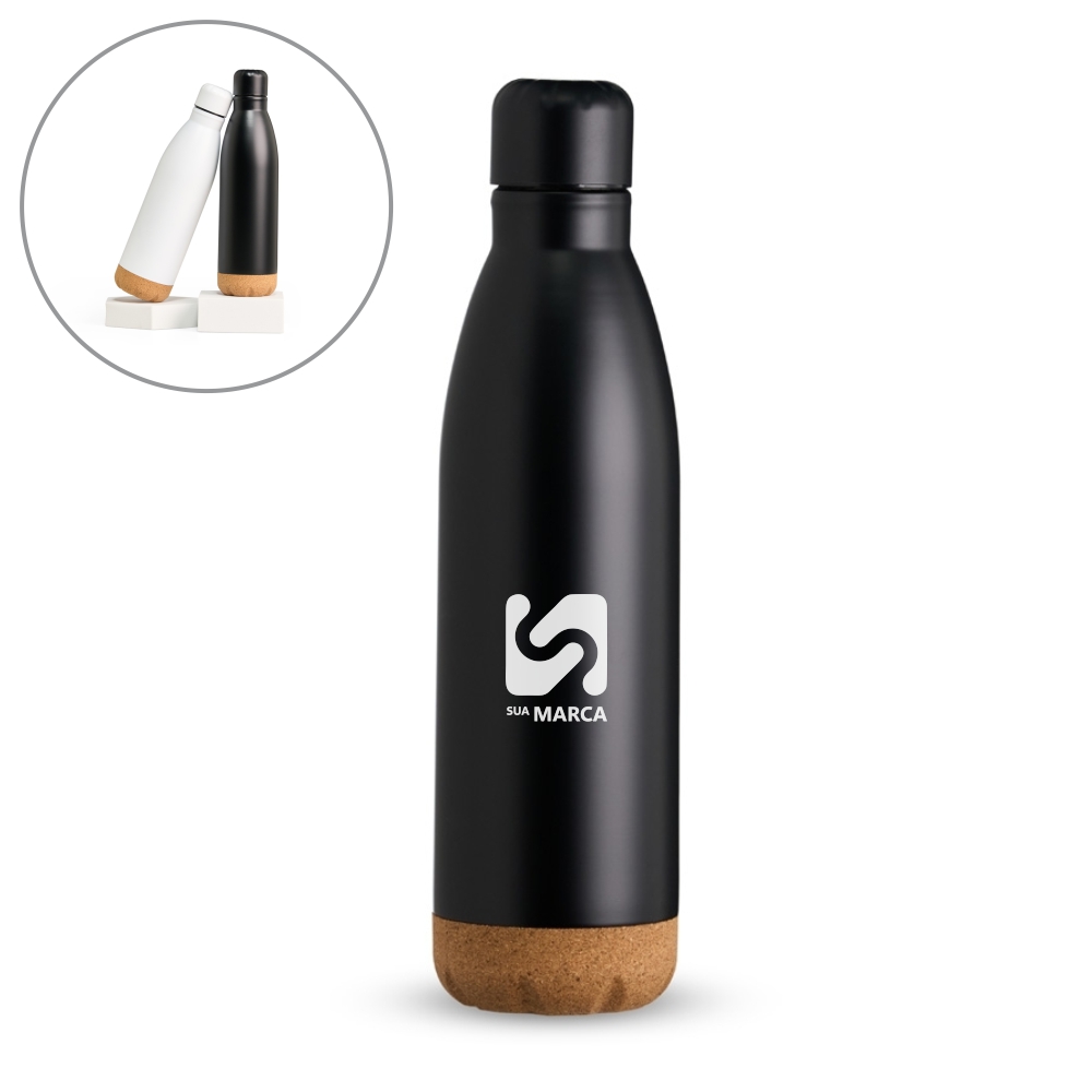 Descrição: Garrafa Térmica feita em inox com capacidade de 500ml com detalhe em cortiça.