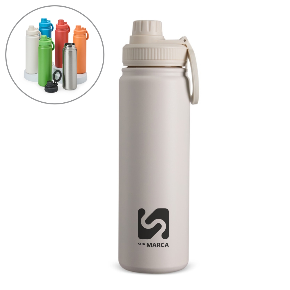 Descrição: Garrafa térmica inox de capacidade de até 750ml. A pintura eletrostática garante uma cor duradoura e acabamento de maior qualidade. Sua parede dupla e isolamento a vácuo mantém o líquido conservado por mais tempo, também evitando vazamentos. Além disso, a garrafa conta com uma tampa rosqueável e uma alça circular magnética, compatíveis com smartphones da linha iPhone.