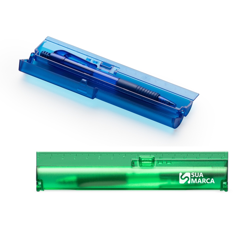 Kit Estojo Com Caneta + regua 20 cm