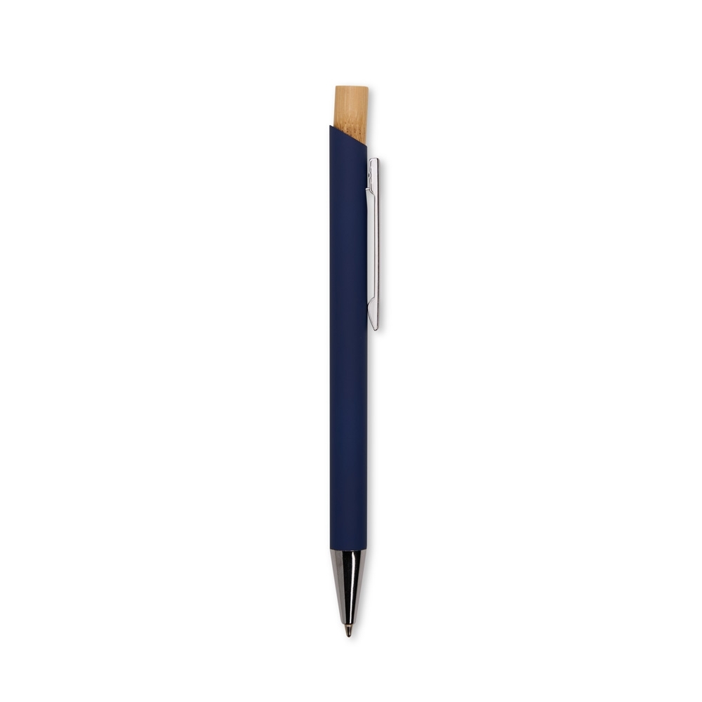Descrição: Kit executivo composto por uma caderneta e uma caneta. A caderneta possui capa dura, marca-páginas em fita de cetim e elástico para fechamento, além de aproximadamente 80 folhas com pauta. Por sua vez, a caneta metálica conta com detalhe em bambu, acionamento por clique e carga esferográfica azul de 1,0mm. Acompanha uma caixa de papelão com berço interno em espuma.