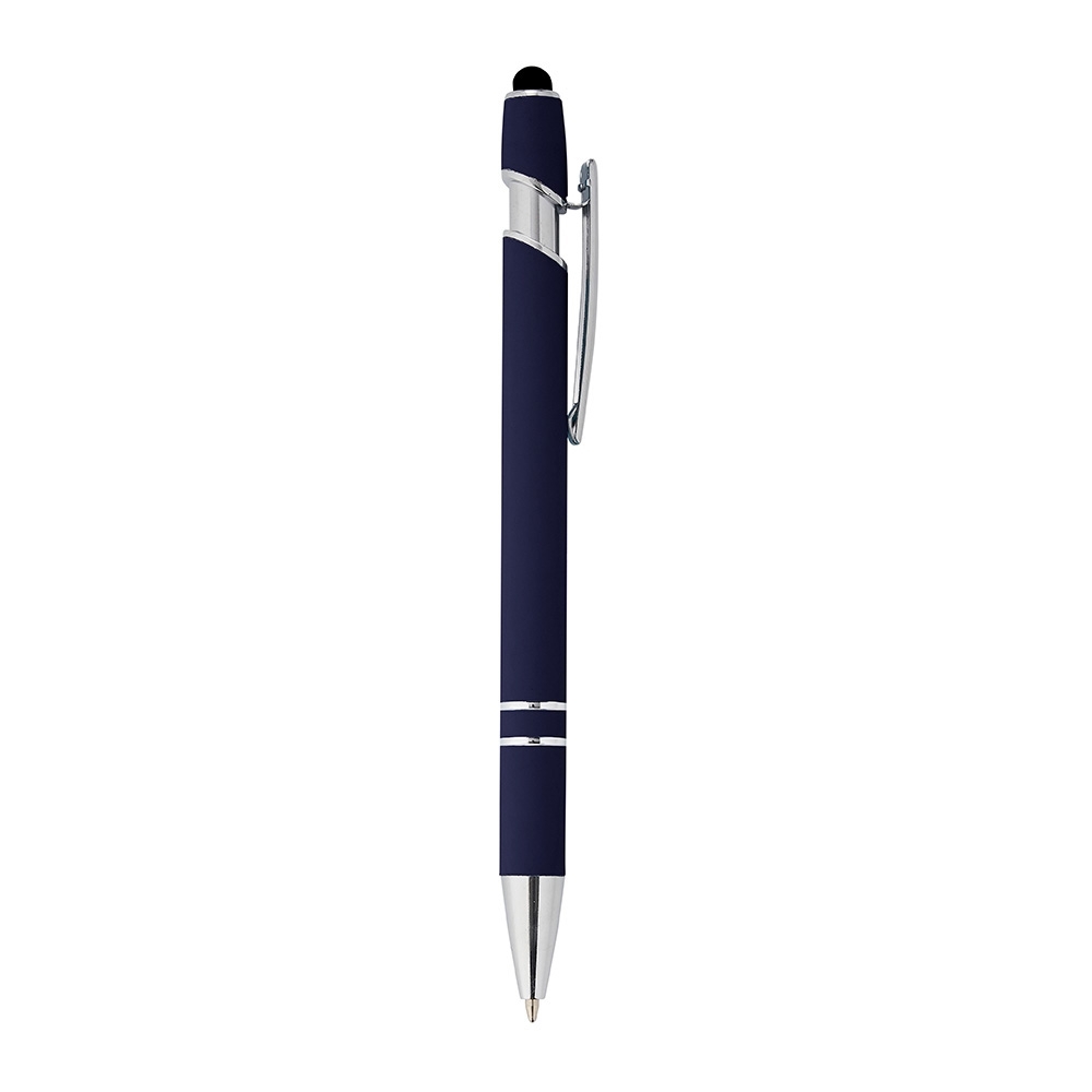 3 - BX05015 - Caneta metálica touchscreen com acabamento similar à borracha, acionamento por clique e carga esferográfica azul 1.0mm.