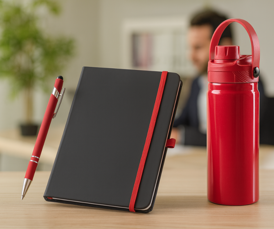 2 - BS93717 - Caderno A5 de capa dura em c.sintético com 160 páginas pautadasCaderno A5 de capa dura em c. sintético. Contém 160 páginas pautadas, fita separadora, elástico e suporte para esferográfica (não inclusa).
