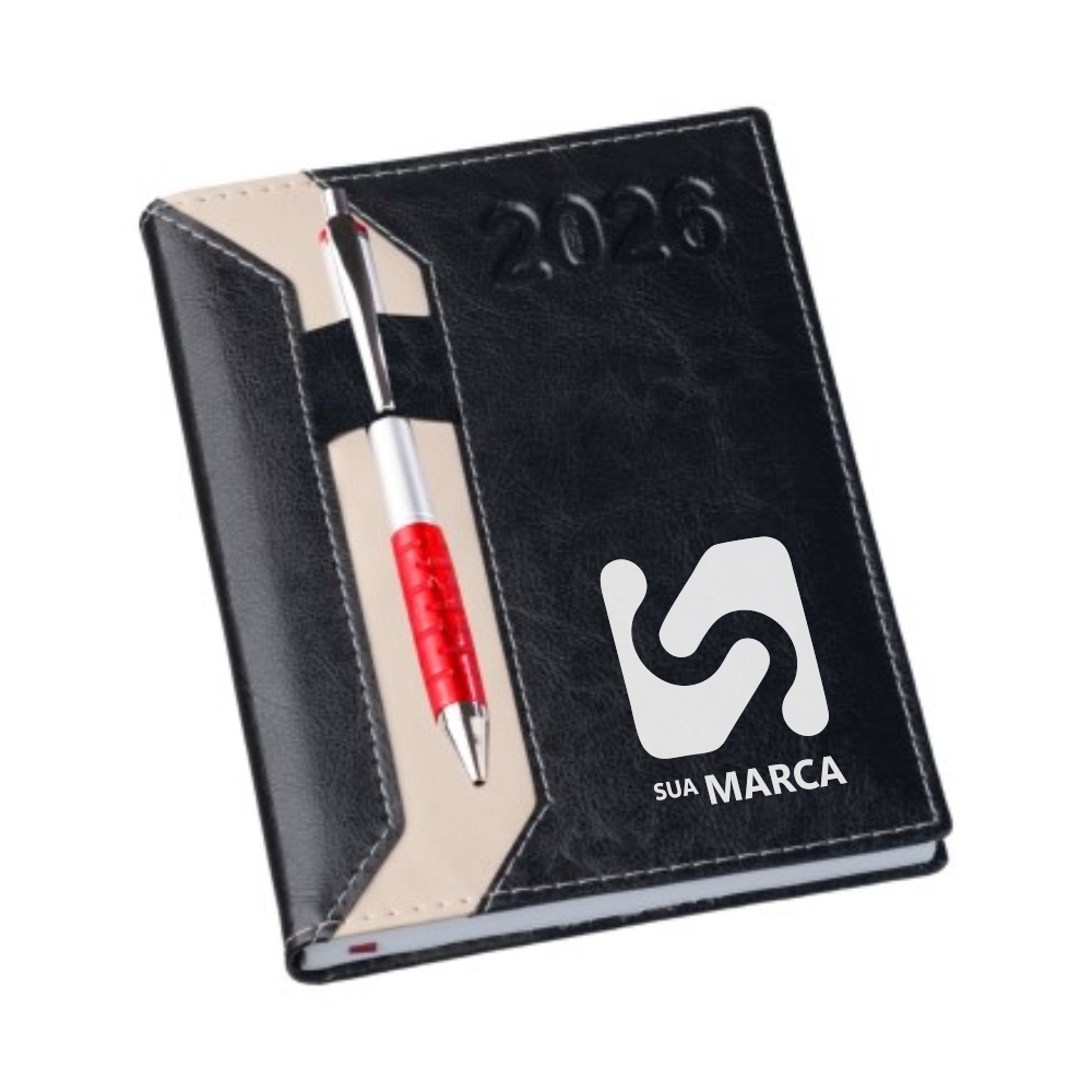 Agenda 2026 Clássica com Suporte para Caneta Preta