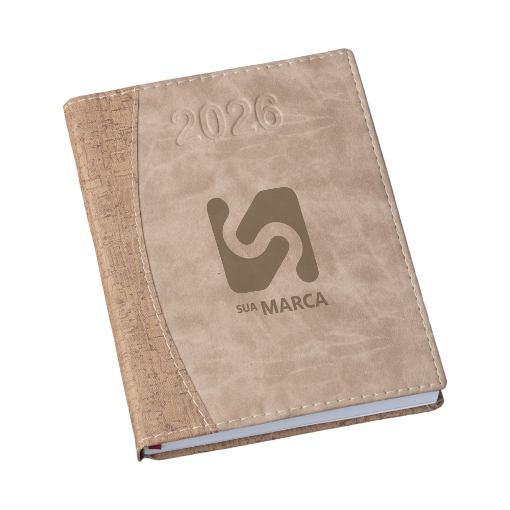 Agenda diária 2026 cortiça marrom em couro sintético 0,6mm.