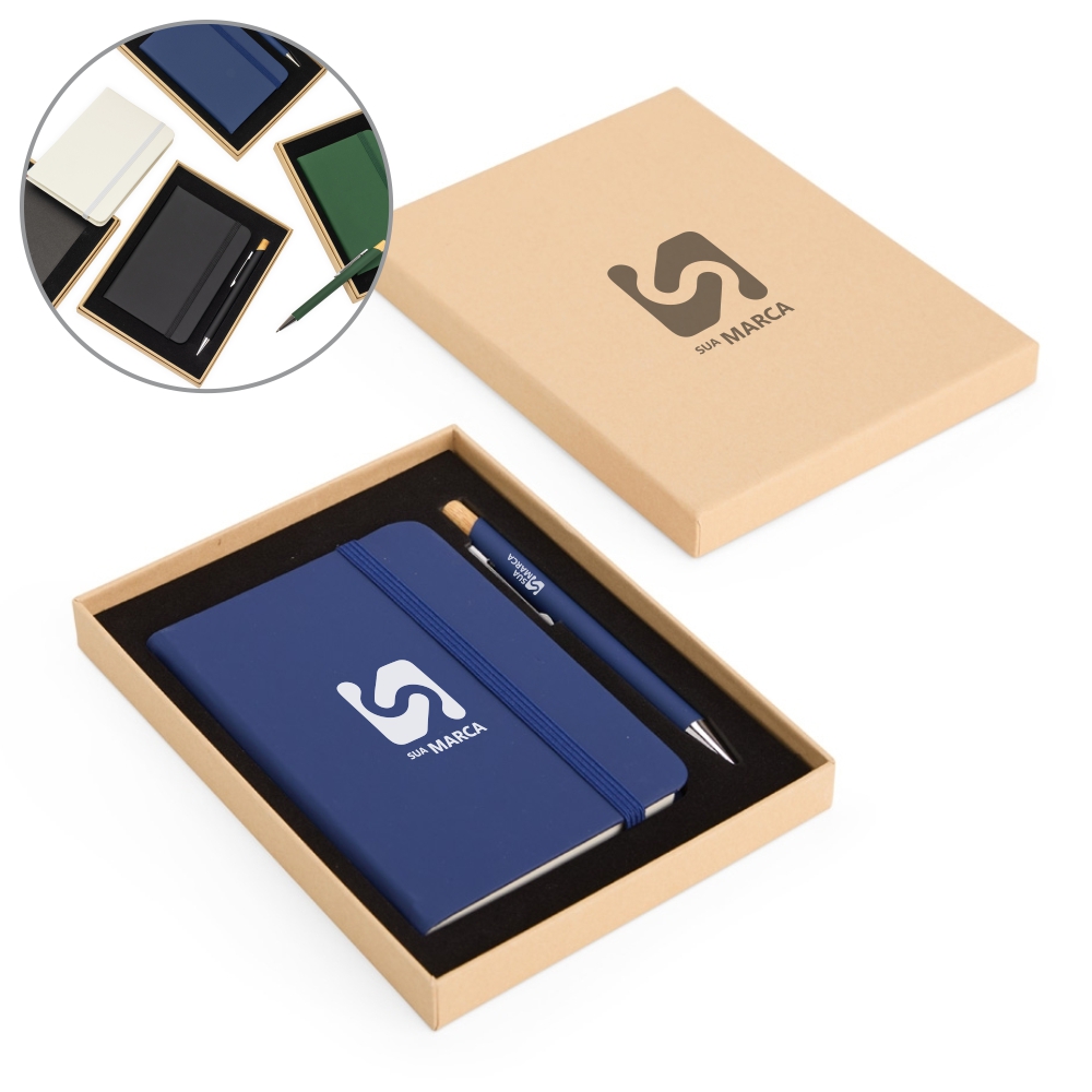 - Medidas aproximadas para gravação (CxL): 17cm x 18cm (caixa) / 13cm x 18cm (caderno) / 0,8cm x 10cm (caneta)
