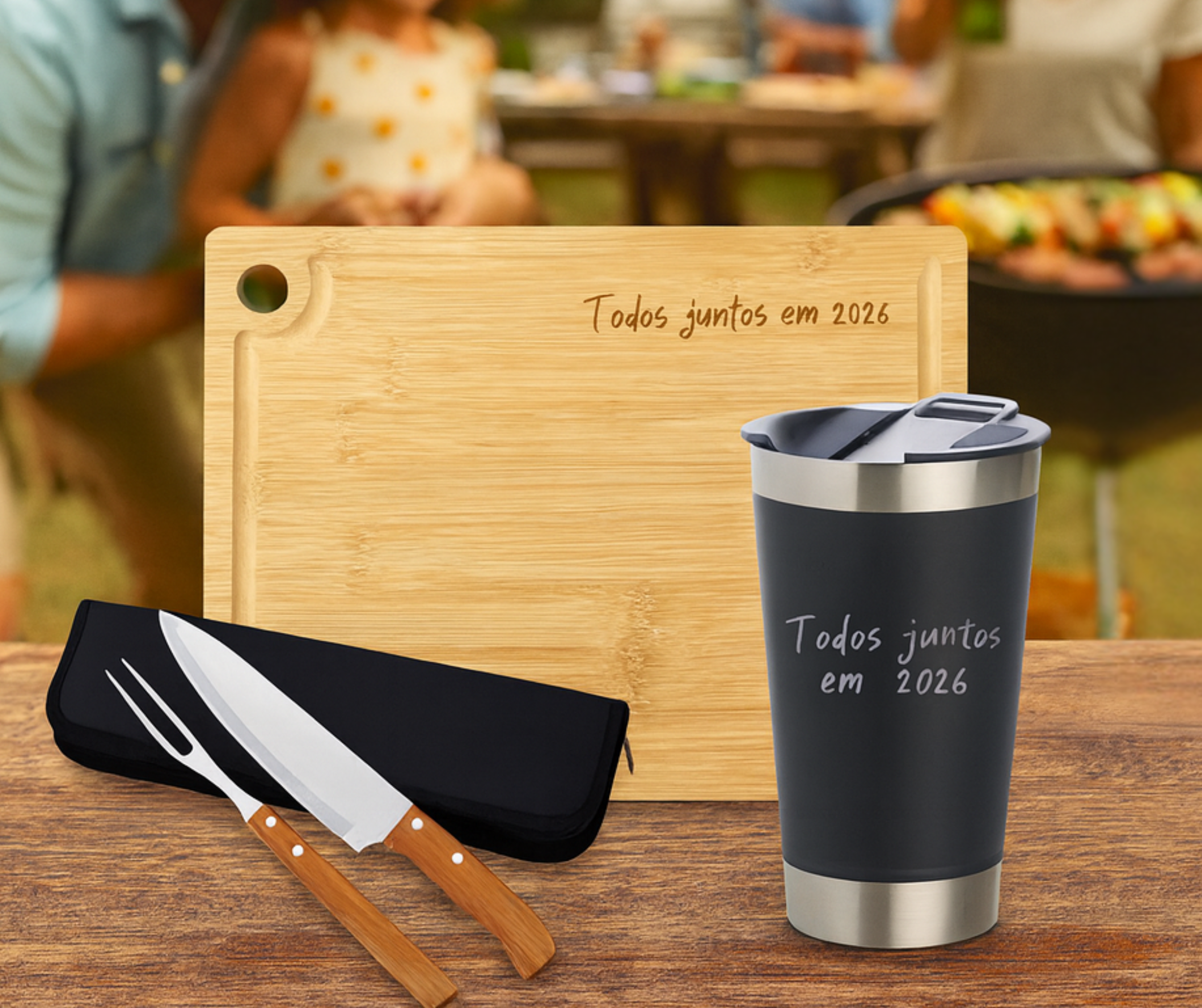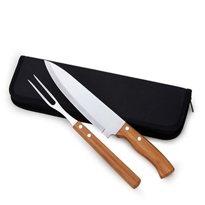 1 - Kit Churrasco - Ref. BX07447 - 2 peças com estojo, contém faca e garfo. Estojo com alça para transporte e área interna com elástico de fixação para os utensílios.