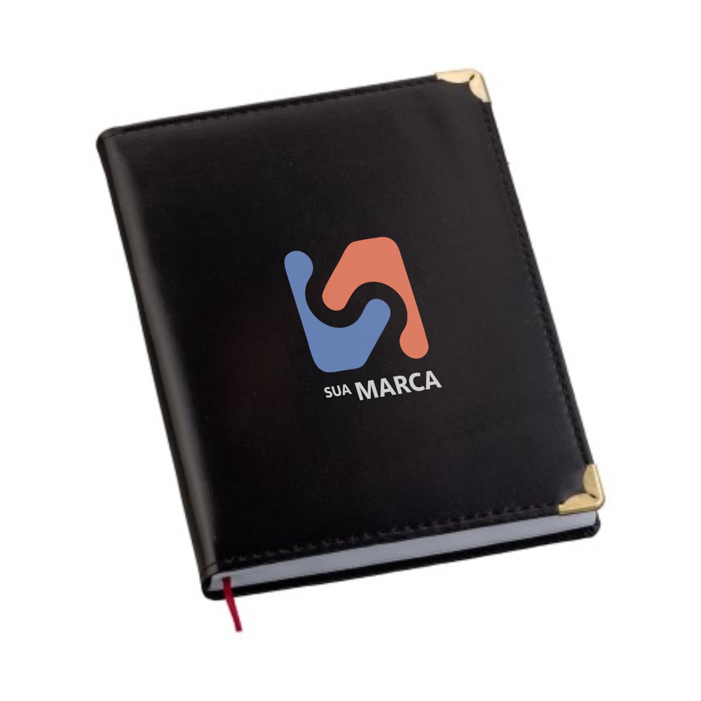 Agenda diária 2026 lisa preta em couro sintético 0,6mm.