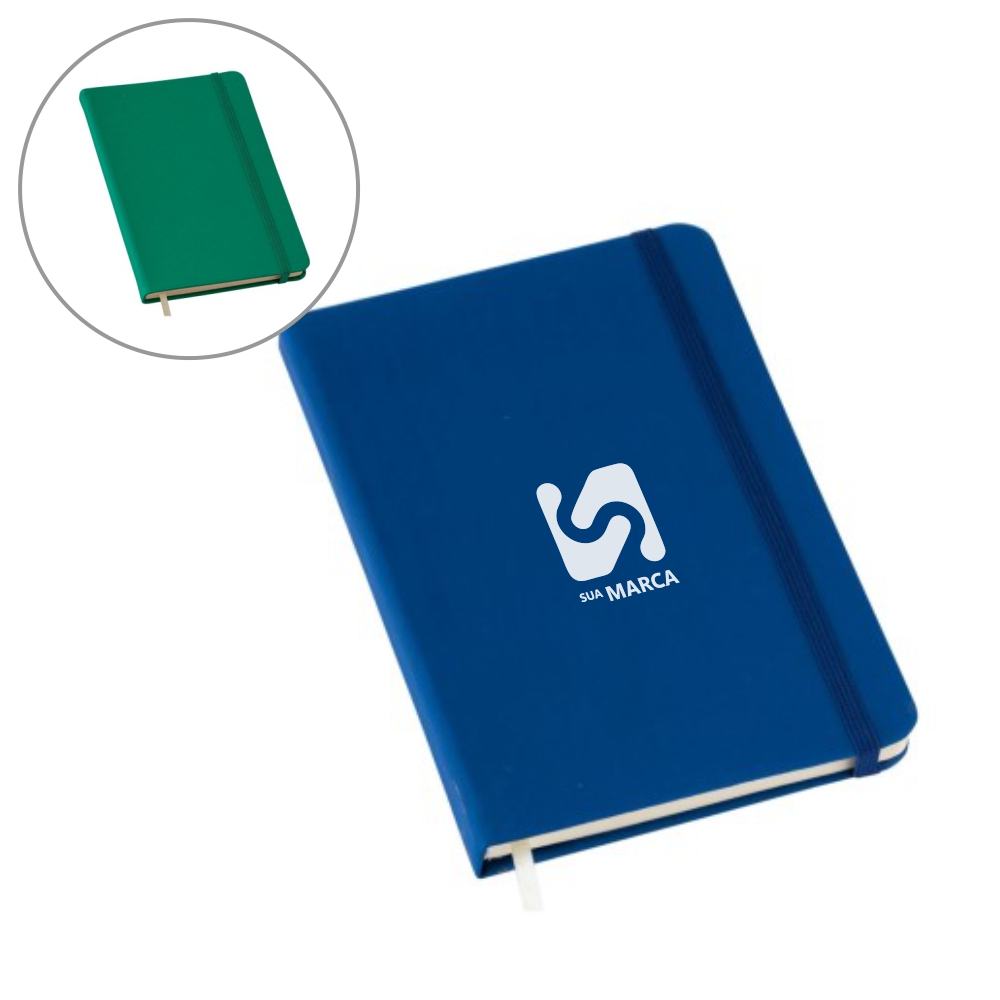 Caderneta tipo MOLESKINE VERDE sem PAUTA - 80 Folhas sem Pauta - Miolo em papel PÓLEN NATURAL levemente amarelado - 80 gramas - Capa em couro sintético emborrachado - com elástico. Formato: 14x21cm