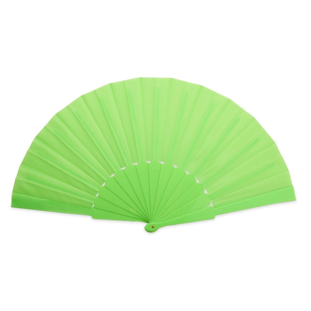 Descrição: Leque com estrutura plástica compacta e tecido leve.