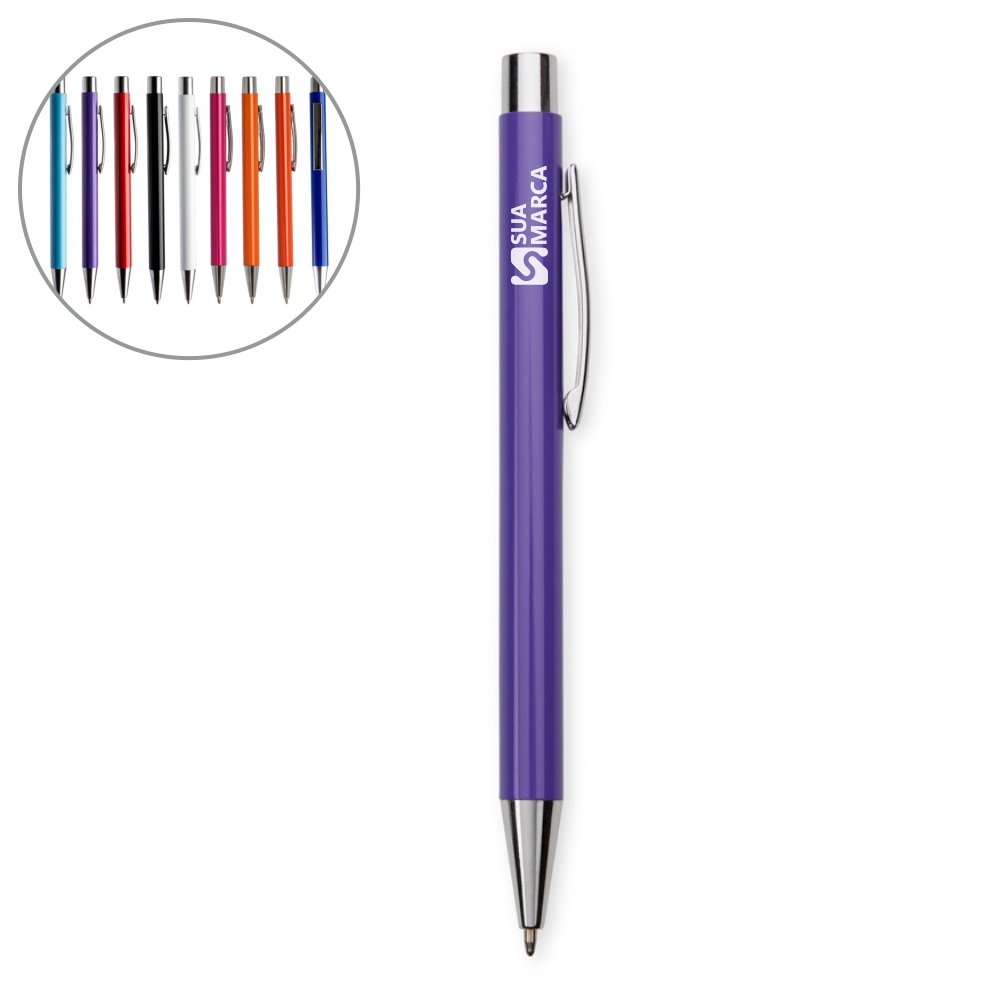 Descrição: Essa caneta metálica é perfeita para tornar as anotações do dia a dia mais eficientes. Com acionamento por clique e carga esferográfica azul de 1.0mm, ela garante uma escrita suave e confortável em qualquer ocasião.