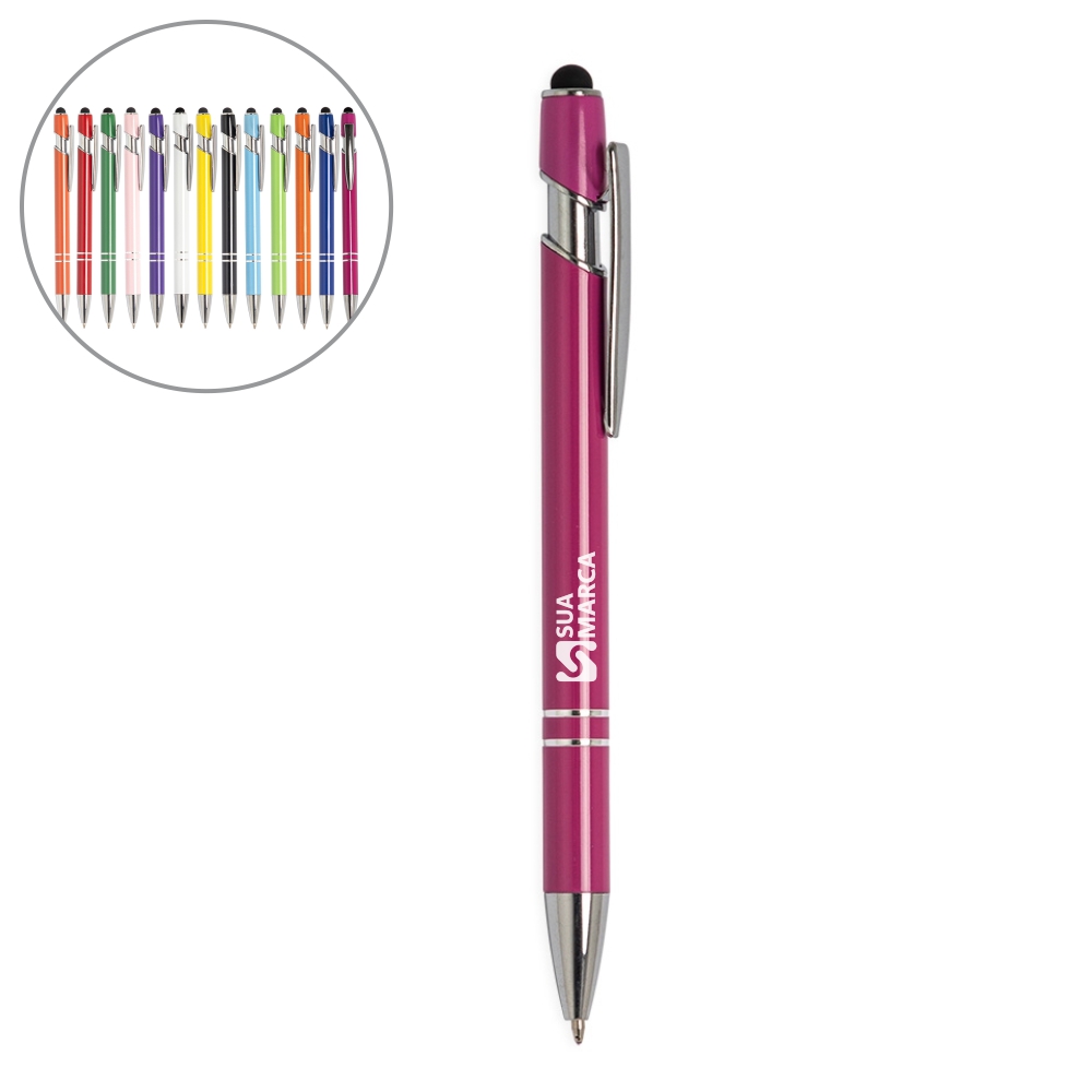 Descrição: Para anotar cada detalhe com elegância. Nossa Caneta Metálica Touchscreen une sofisticação e praticidade em cada movimento. Com seu acabamento brilhante e acionamento por clique, ela possui carga esferográfica azul de 1.0mm, garantindo uma escrita precisa. Além disso, com a ponta touchscreen é possível utilizá-la em dispositivos eletrônicos sem tocar diretamente na tela, evitando manchas indesejadas.