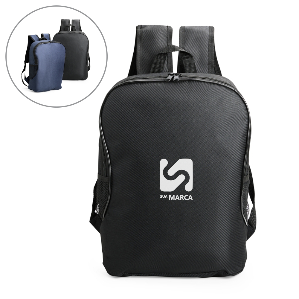 Mochila em poliéster impermeável, com fechamento em zíper e capacidade máxima de 18 litros. Conta com divisória interna em tela, ideal para guardar notebooks de até 15,6 polegadas, além de dois bolsos laterais com elástico.Altura :  40,5 cmLargura :  30 cmProfundidade :  13 cmMedidas aproximadas para gravação (CxL):  35 cm x 25 cmPeso aproximado (g):  428