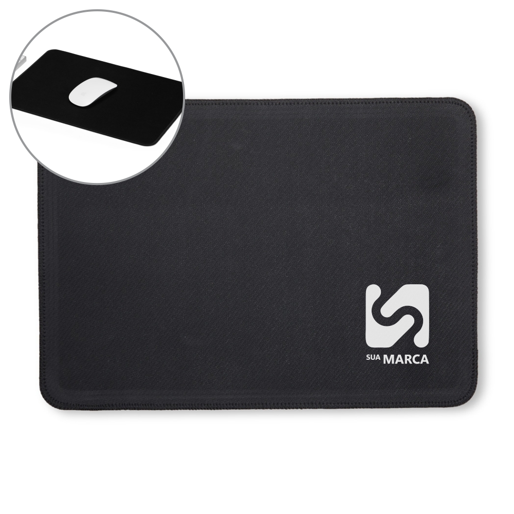Descrição: Mouse pad feito em poliéster impermeável flexível com base antiderrapante em borracha.