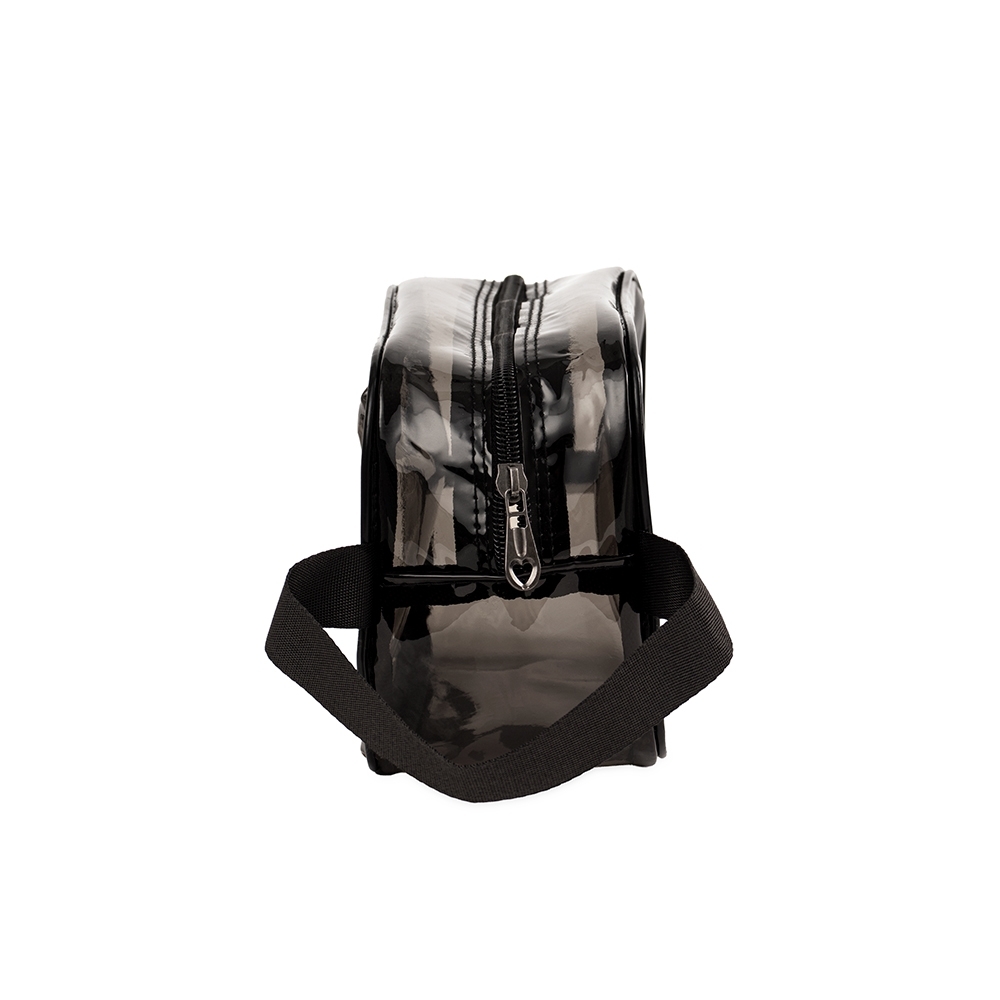 Nécessaire impermeável em PVC com fechamento em zíper e alça lateral em nylon.