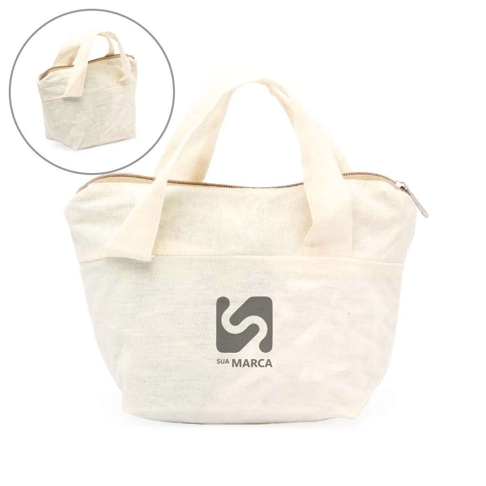 Nécessaire de algodão com zíper, alças e frente e verso lisos.