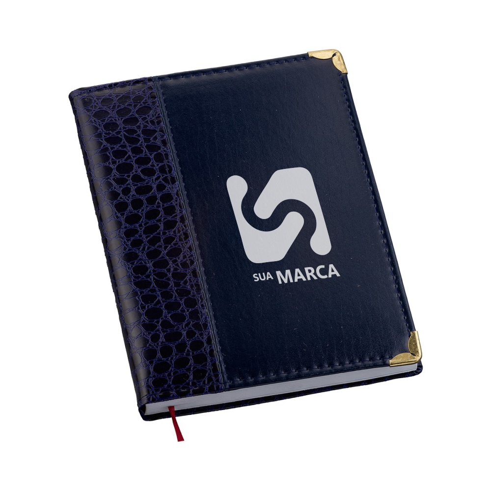 Agenda diária 2026 croco reta azul em couro sintético 0,6mm