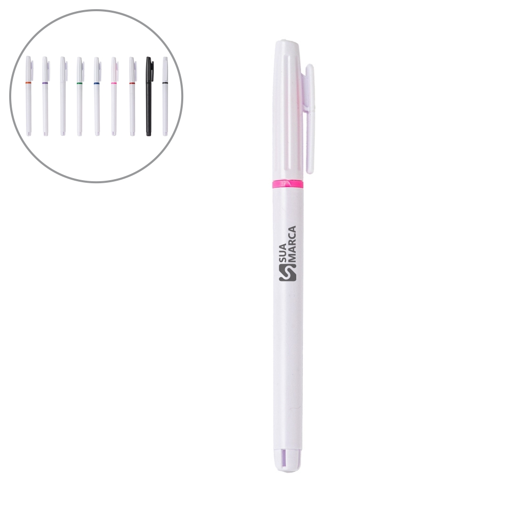 Descrição: Caneta plástica com tampa e carga esferográfica azul 1.0mm.