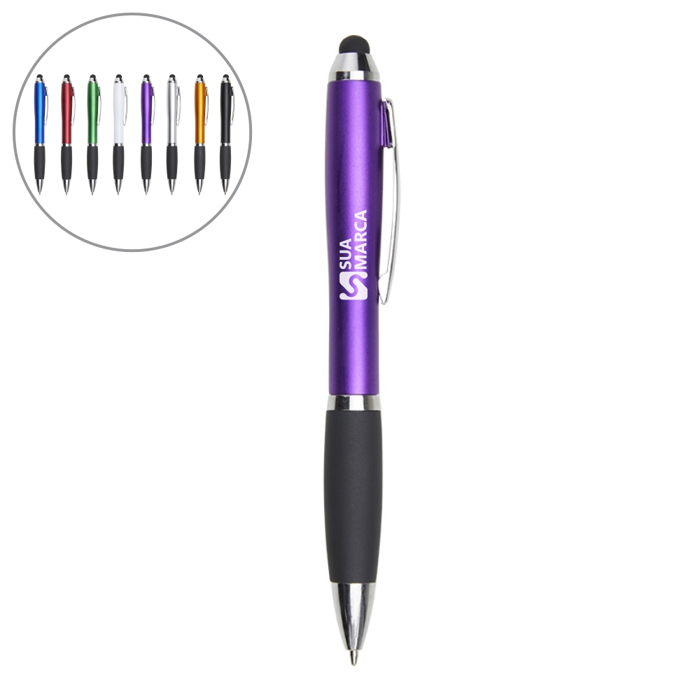 A Caneta Plástica Touch é prática e moderna, combinando a funcionalidade de escrever com a conveniência de um stylus. Esse modelo é perfeito para quem usa frequentemente dispositivos touch screen, oferecendo um brinde útil que mantém sua marca ao alcance da mão.