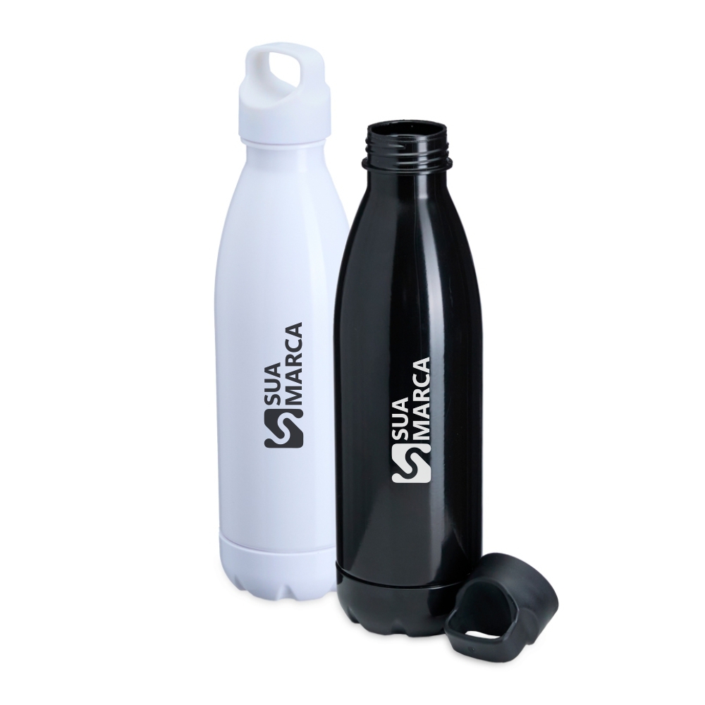 Descrição: Uma ótima opção de garrafa para acompanhar uma rotina agitada e manter a hidratação sob controle. Feita em PVC e com sua capacidade máxima de 680ml, ela está sempre pronta pra acompanhar quem está sempre em movimento. Sua tampa rosqueável é feita em plástico ABS e conta com uma alça fixa para facilitar o transporte para qualquer lugar e, inclusive, pendurar em alças de mochilas. Além disso, ela conta com fundo removível para facilitar a higiene e diminuir o contato direto com sujeiras em superfícies.