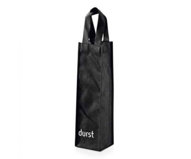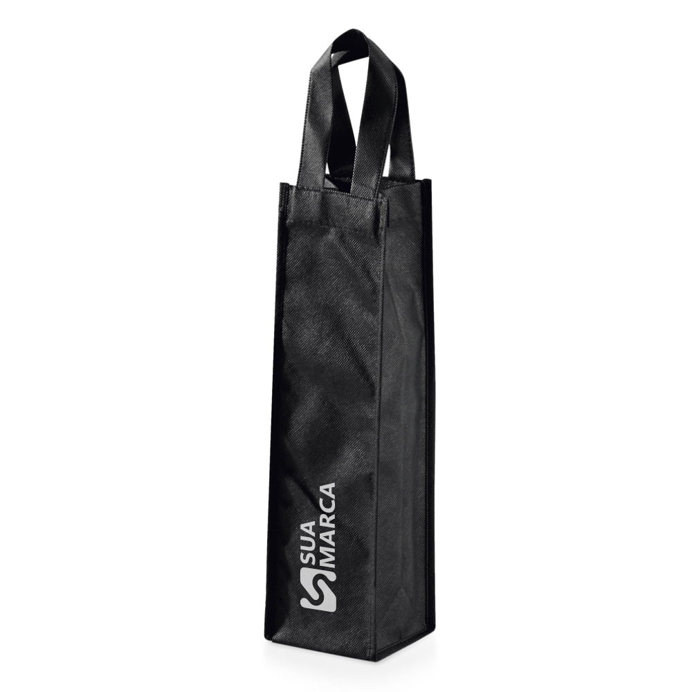 Sacola para 1 garrafa. Non-woven: 80 g/m². 100 x 330 x 100 mm.