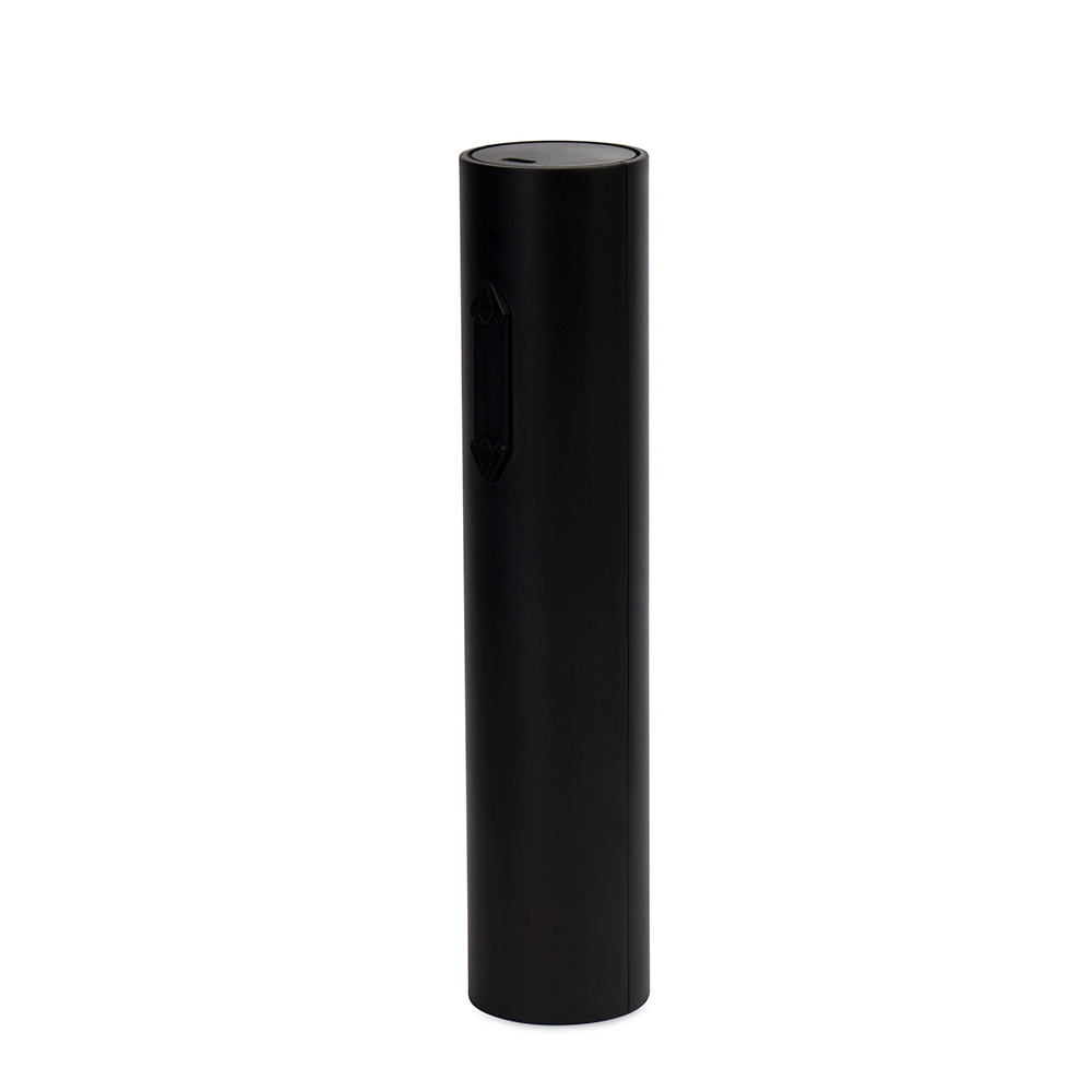 Saca-rolhas elétrico recarregável com estrutura em plástico ABS, policarbonato (PC) e broca em aço carbono. Conta com botões em formato de diamante para controle do aparelho e acompanha cabo USB-C para carregamento.