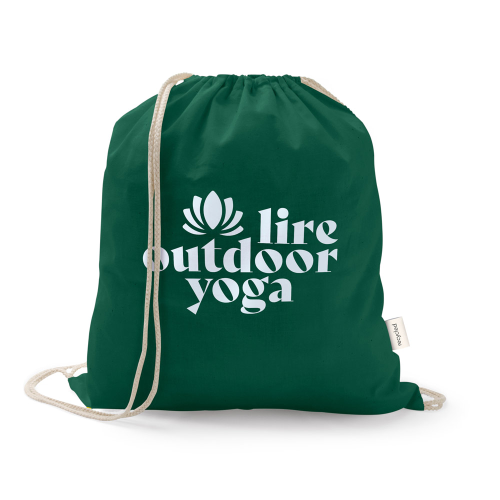Ref. BS92083 - Sacola tipo mochila em 70% algodão reciclado e 30% poliéster reciclado (150 g/m²), com alças de algodão. O tecido é sem tingimento, e utilizado na sua cor original, sem produtos químicos de tingimento ou branqueamento, contribuindo para um menor impacto ambiental. 370 x 410 mm