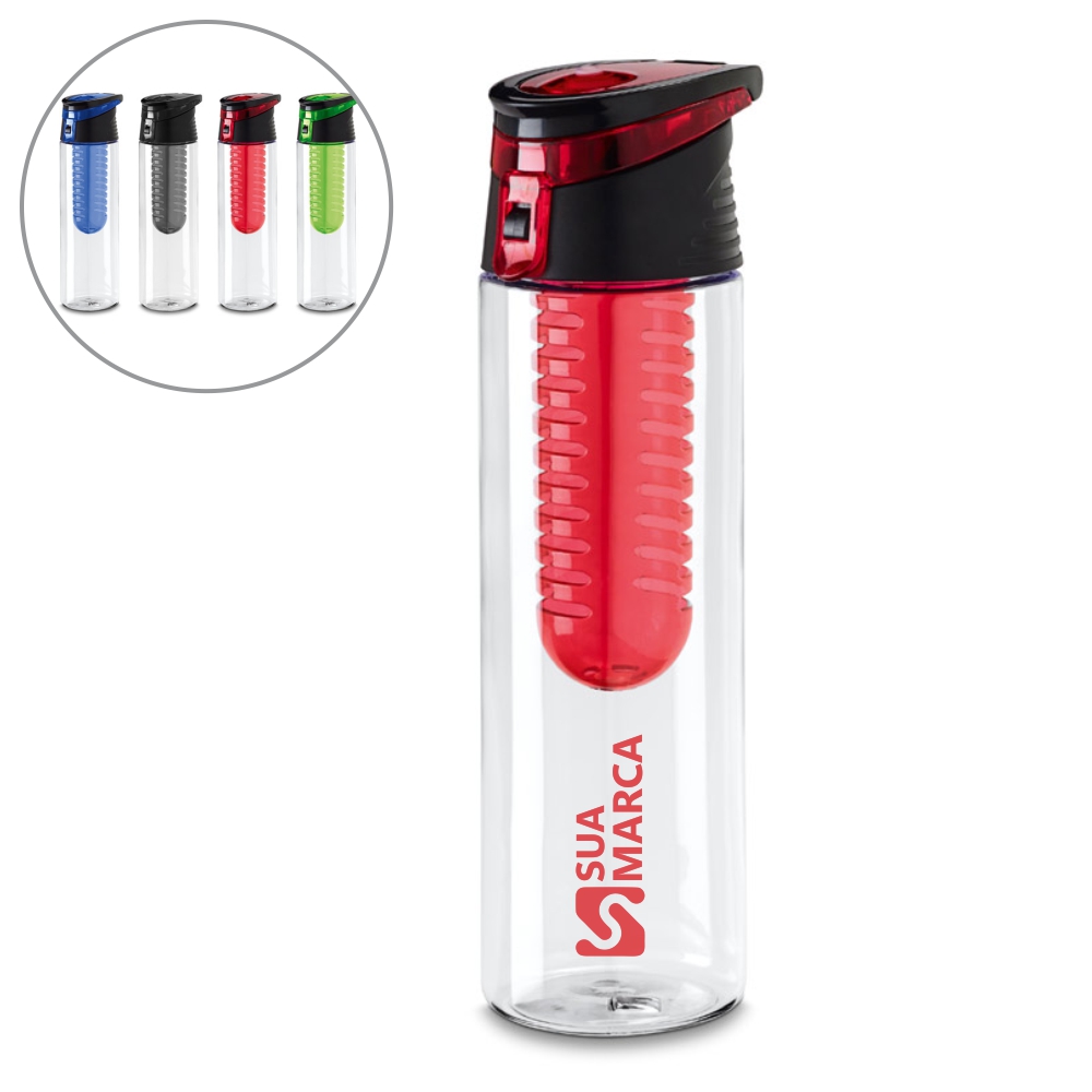 Squeeze em AS e com tampa flip top em PP com infusor de frutas e capacidade até 740 ml. Food grade. Caixa branca 94657 vendida opcionalmente. ø70 x 247 mm.