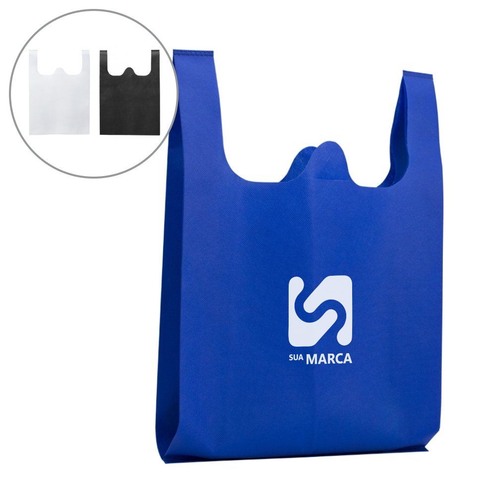 Sacola TNT com alça e costura termo selada.