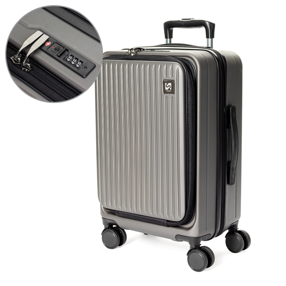 Conta ainda com cadeado TSA embutido na parte superior, quatro rodinhas giratórias 360°, duas alças de mão, além de apoios e ganchos laterais. Acompanha placa metálica personalizável.